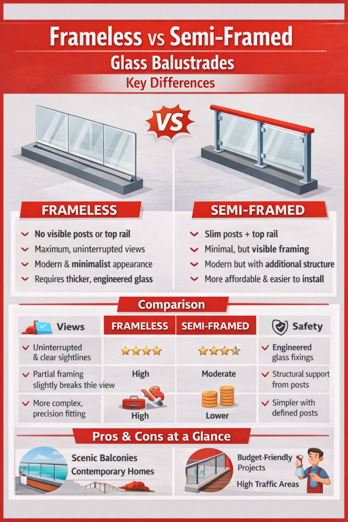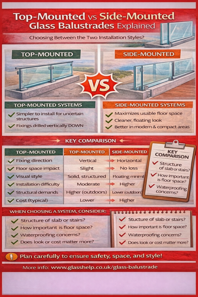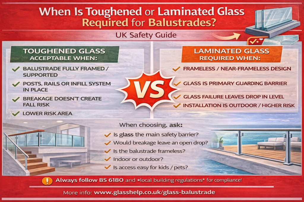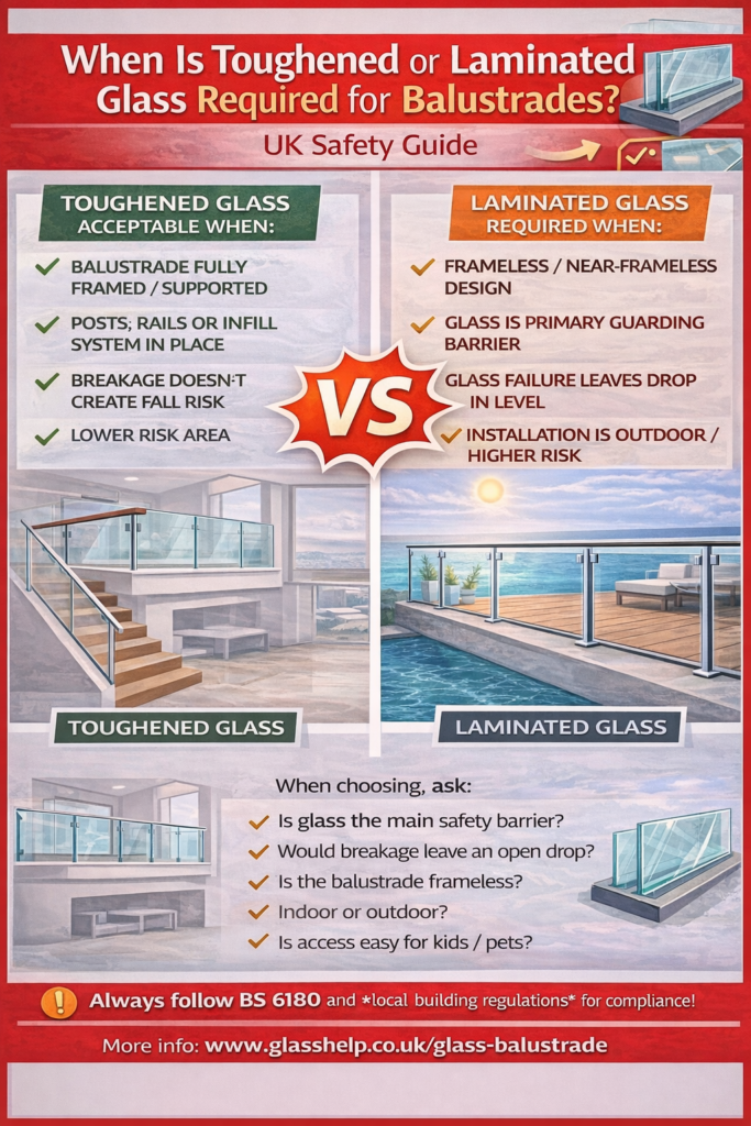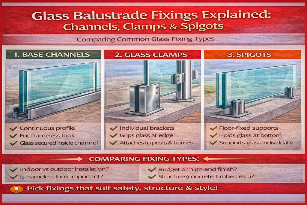 - Large glass panels: consider safety backing and correct fixings. Safety-backed glass helps hold fragments together if damaged.