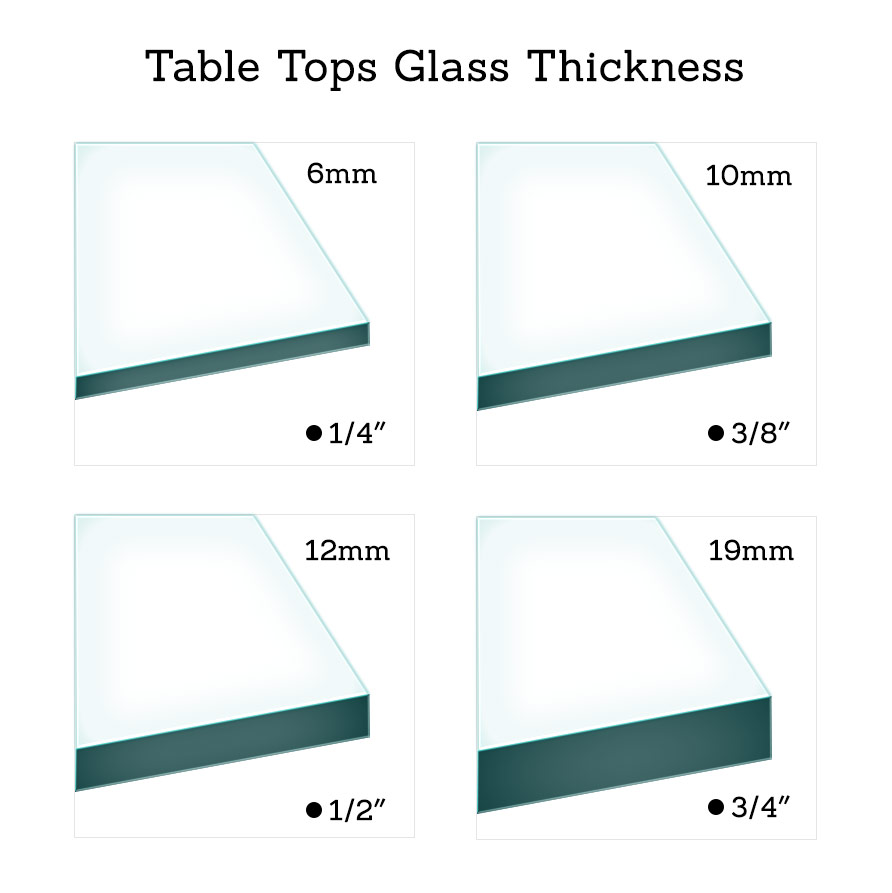 4. Select thickness based on table size and support. Glass thickness guide
