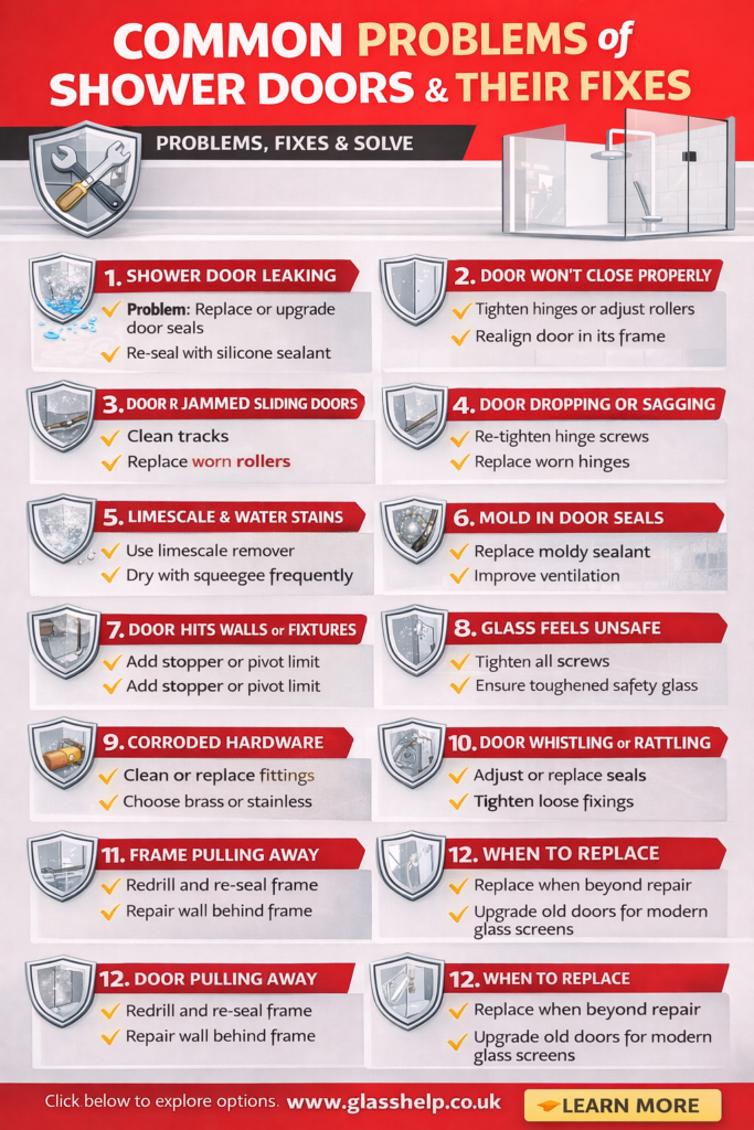 Shower doors are designed to make your bathroom more functional and visually appealing. However, over time, even high-quality shower doors can develop problems due to daily use, moisture exposure, and installation issues.